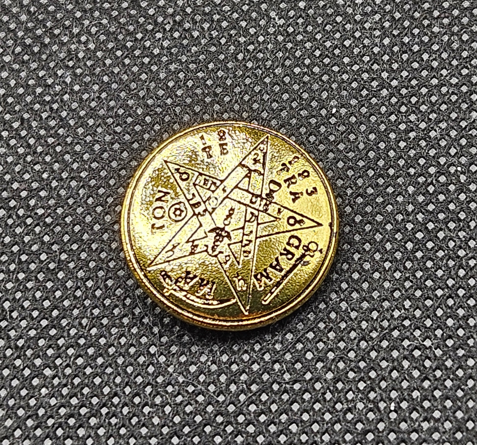 The Tetragrammaton, derived from the Greek term meaning the four letters, is the ancient Hebrew name of God associated with divine self existence and infinite presence. This holy Name appears more than five thousand times in scripture and has been revered throughout history as a source of spiritual power and protection. Within its design is a circle of protection that surrounds a pentagram, symbolizing balance and the interplay between spirit and the four earthly elements.