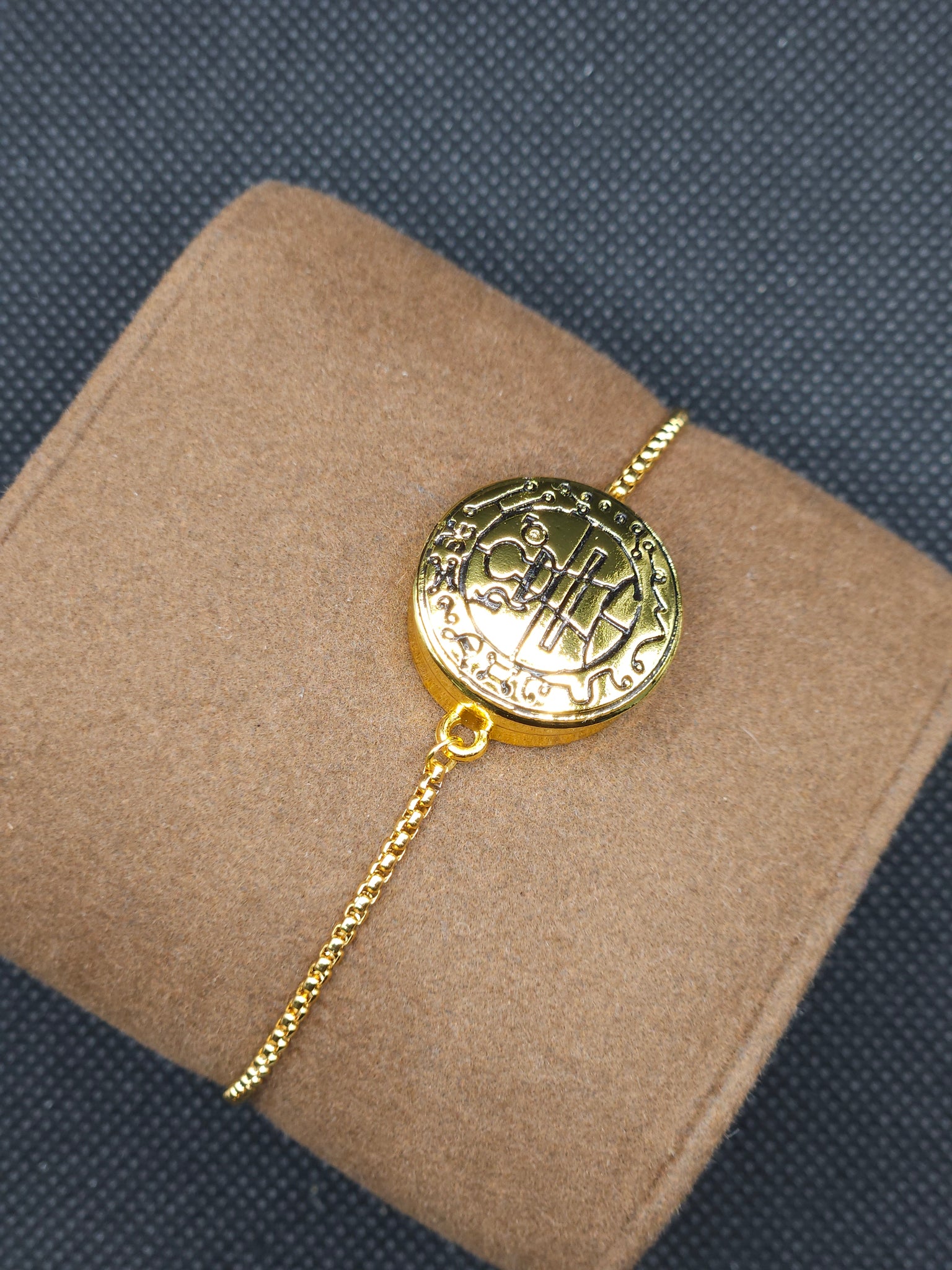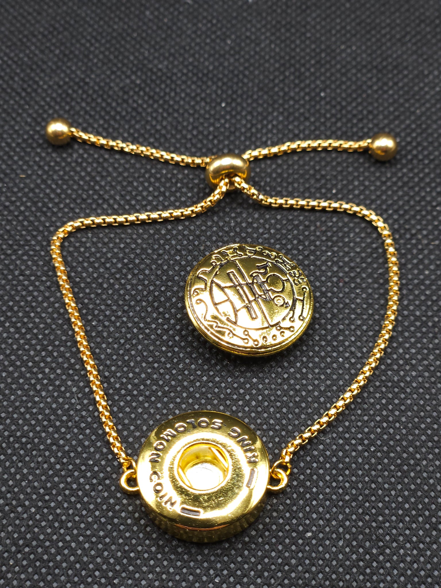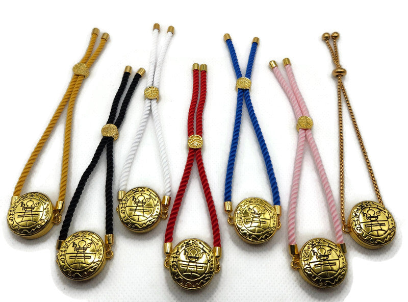 Experience a powerful fusion of ancient symbolism and modern design with the Secret Seal of Solomon Bracelet. This adjustable snap button bracelet is crafted to fit every King Solomon Coin snap seal, allowing you to interchange designs effortlessly while carrying a meaningful talisman wherever you go.